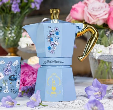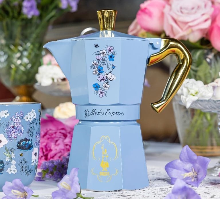 Descubra a edição especial Bialetti Moka Express Bridgerton 6 xícaras: tradição italiana em alumínio, acabamento azul cerúleo com detalhes dourados, capacidade para até 6 expressos, e o charme da série da Netflix. Ideal para quem quer sabor, estilo e um toque de luxo na cozinha.