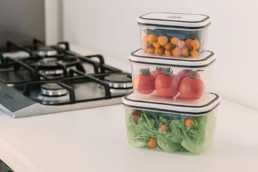 Os potes são ideais para armazenar marmitas, sobras de refeições, legumes e verduras, ajudando a manter tudo organizado e fresco por mais tempo.